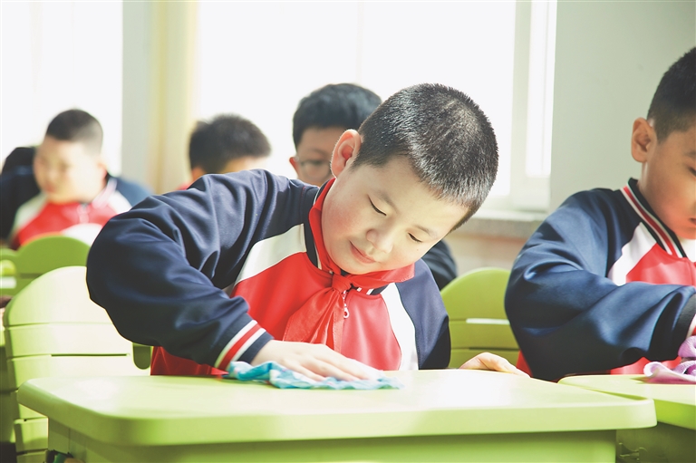 擦桌椅、整理箱柜……在继红小学,每周五半小时的“我的地盘我做主”大扫除劳动成为了“固定科目”,学生们按计时有序而紧张地进行劳动,有分工有协作,个个都是劳动小能手。