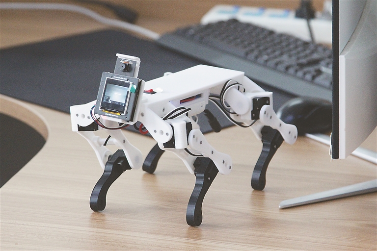 入驻孵化基地的正世科技闫子辉手中拿着可编程的机器狗。