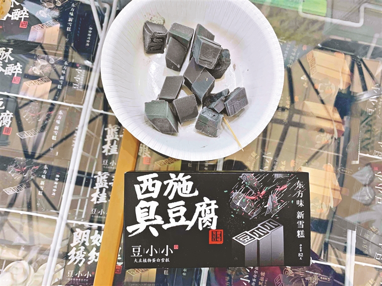 “西施臭豆腐冰淇淋,还是大豆做的?这能好吃吗?”“尝尝你就知道了,保证好吃,闻起来带点臭味,吃起来老香了,还很健康。”