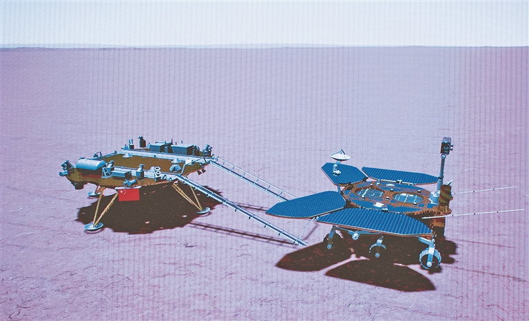 祝融号火星车已安全驶离着陆平台(模拟图像)。