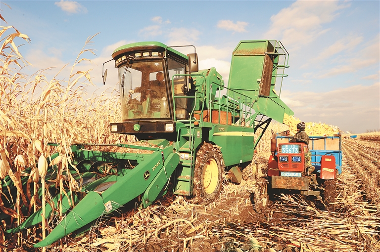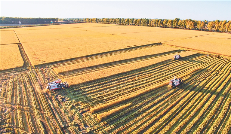 青冈县和众现代农业专业合作社收割场景。