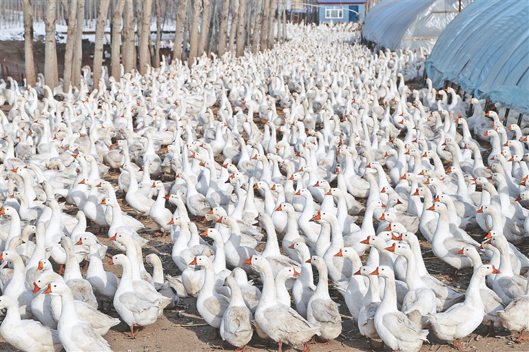 青冈县民政镇继东大鹅养殖合作社带动贫困户增收致富。