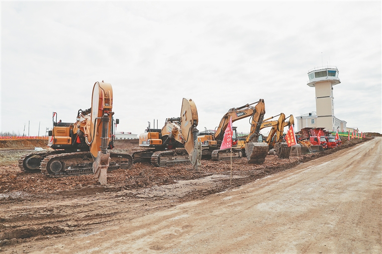 省百大项目漠河机场改扩建工程加紧施工。王景阳摄