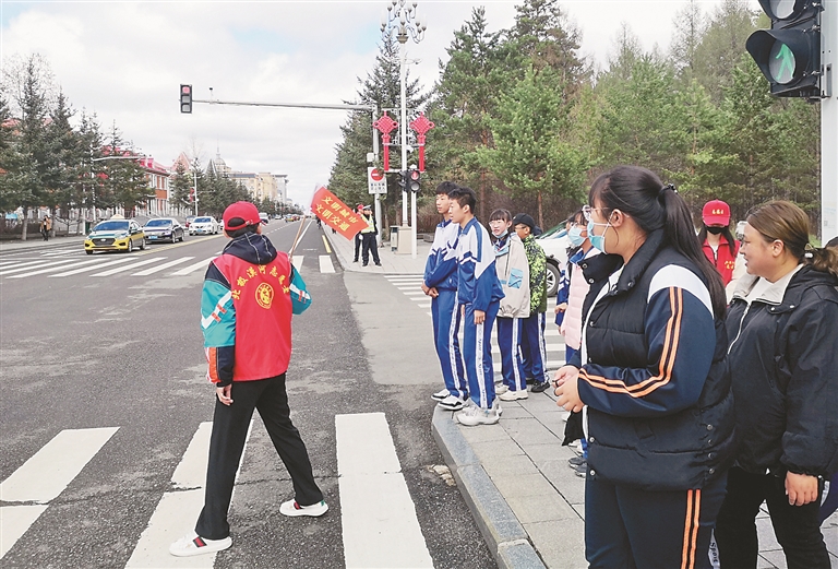 漠河市志愿者上路协助交警开展志愿服务活动。王景阳摄