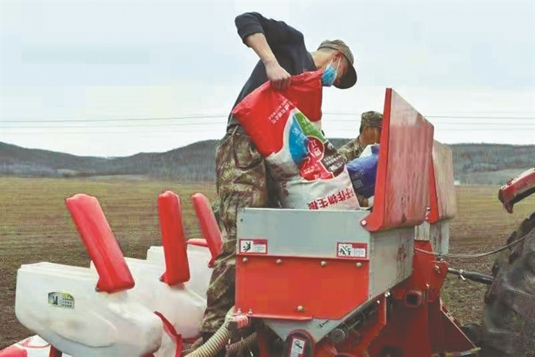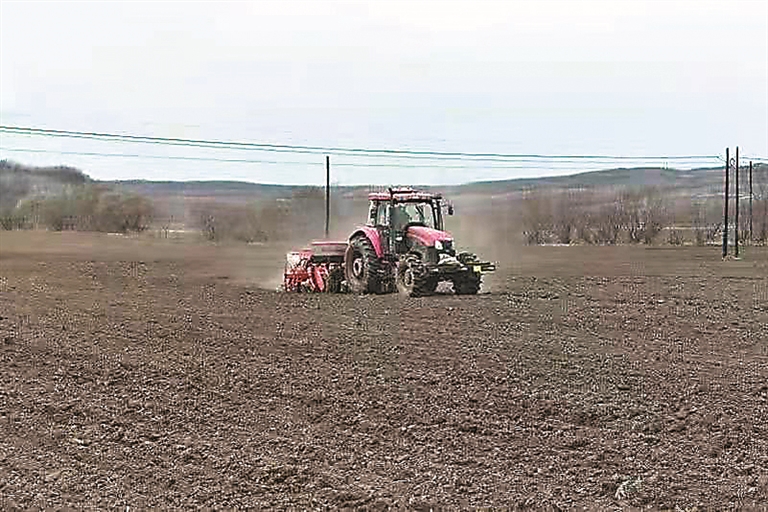 呼玛县北疆乡农民鲁伟正在地里调试着农机具。他说:“自己年纪大了,种地总得喊别人帮忙,今年自己就种了6晌地玉米,其余的都土地托管了,今年春耕省了力气。”