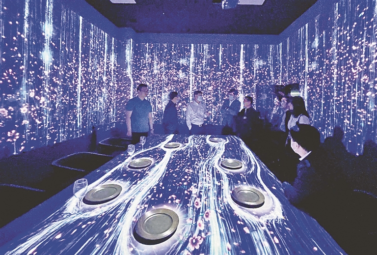 与以往的闭幕式形式不同,2021年科技活动周闭幕式在开展优秀科普作品表演活动的同时,还同步开展了光影互动科技展览体验活动。运用科技手段和特效装置,巧妙地将激光、交互、影像和造景等数字科技与儿童教育、运动健身和沉浸式餐厅等有机融合,借景构景、移步换景、虚实结合,使观众在光影艺术体验空间感受数字科技的魅力。
