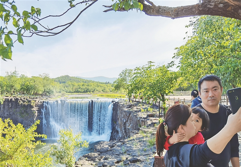 五月,牡丹江镜泊湖迎来最美时节,青山绿树映衬下的镜泊湖瀑布格外壮观,70多米宽的瀑布,水声轰鸣,激流飞泻,水石相击,飞溅的水花瞬间形成水雾,蒸腾出美丽的彩虹,犹如进入仙境,让前来观赏的游人流连忘返。