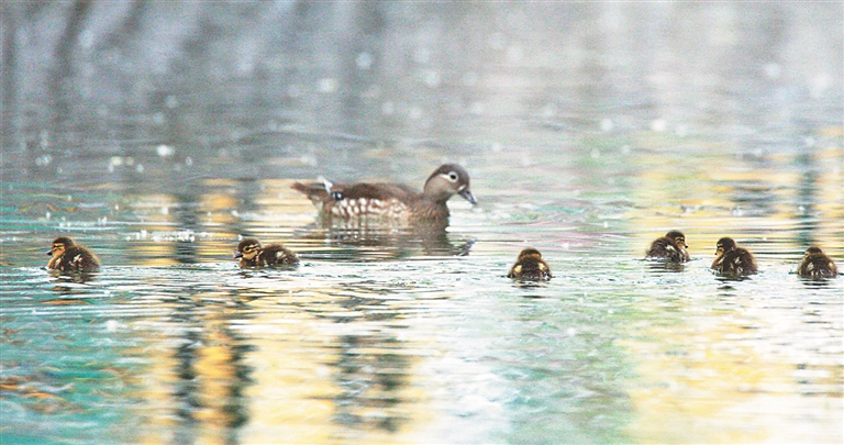 据悉,它们是野生鸳鸯到兆麟公园繁殖26年以来,出生日期最早的鸳鸯宝宝,之前的纪录是6月7日,整整提前了11天。
