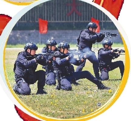 “兵不解甲,枕戈待旦”。哈尔滨市公安局巡特警支队的8名狙击手对文字靶进行精准射击。鹰击长空、壮怀激烈,旋桨轰鸣、守护平安。直升机飞过观礼台,编程旋翼无人机演示数字“100”字型。特警队员立、跪、坐、卧等姿势快速转换、快速射击,并在快速推进过程中进行警组队形转换、击落靶标。警用摩托车编队呈箭头护卫队形行进,组成数字“100”,象征建党100周年的光辉历程。牡丹江市公安局防暴队、七台河市公安局警棍盾牌方队、鹤岗市公安局擒敌拳方队等,分别列阵演练,身形矫健、气势磅礴,展示了龙江公安敢打必胜、守护平安的强大力量。