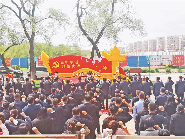 参观展览后,全体人员重温入党誓词。 闫艺丹 黑龙江日报全媒体记者 姚建平摄