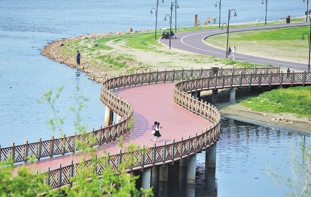 近几日,哈尔滨市道里区群力江畔,工作人员对数公里范围内的设施进行了维修养护。休闲座椅重新粉刷,塑胶跑道的破损路面被修复,音乐广场上的欧式建筑也进行了维修,群力江畔呈现出全新的面貌。