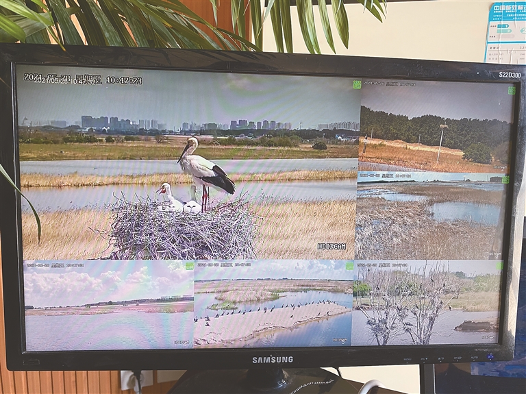 这几天,齐齐哈尔市百鸟湖景区的东方白鹳一家成为了明星焦点。两只成年东方白鹳连续两年迁徙到这里“安家落户”,今年5月,它们喜获5只宝宝。在视频监控里可以看到,5只小家伙活泼可爱,不时将小脑袋探出巢外,好奇地看着外面的风景。
