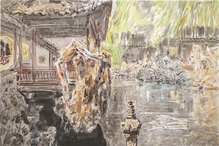 “水彩画是西方来的一个画种,我一直尝试在形式上和理念上进行新的探索,比如怎样融会贯通,怎样用西方的形式表达中国元素?所以我多选择丁香、园林、亭廊水石等这些中国元素,作为我创作的题材。艺术实践没有终点,我会一直在路上。在探索中,在创作中,我希望关注自己,引领别人!”赵云龙说。