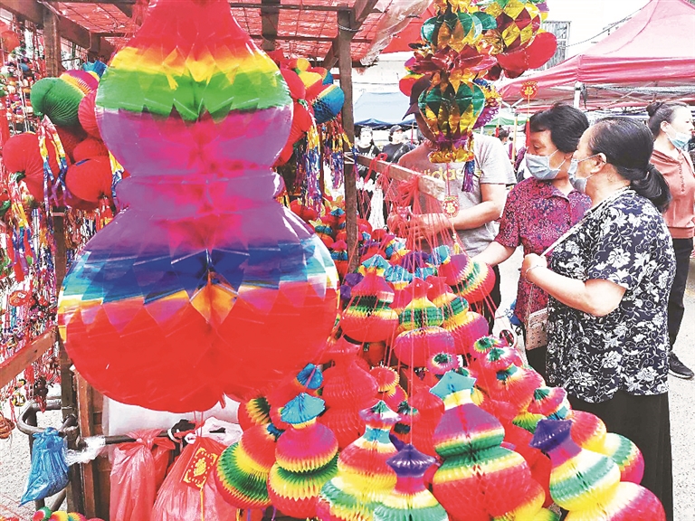 端午节,佳木斯市铁西综合大市场内,经营五色葫芦等端午商品的摊位前人头攒动,人们纷纷驻足购买,迎接端午节的到来。 陈志伟 黑龙江日报全媒体记者 邵国良摄