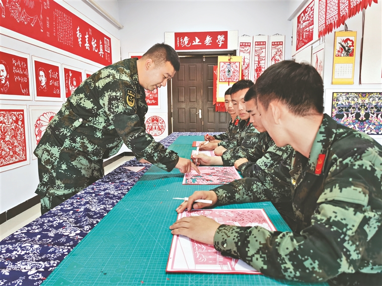 官兵正在进行剪纸活动。段洋洋 黑龙江日报全媒体记者 邵晶岩摄