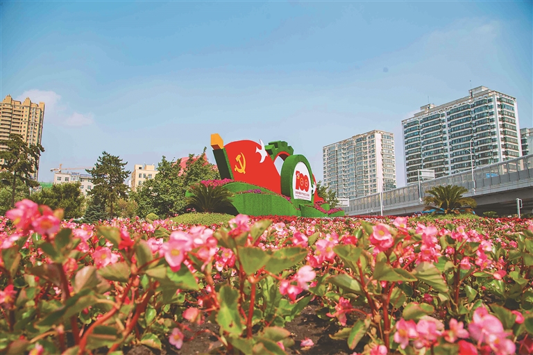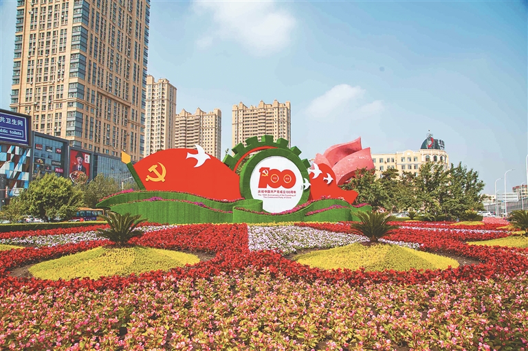 为庆祝中国共产党成立100周年,哈尔滨市城管局组织市、区各级园林部门开展建设了“建党百年”主题景观。截至目前,全市已完成彩化建设34.14公顷。今年哈市打造了“一线、一环、十园、 百景”相结合的城市彩化景观带,串红、万寿菊、海棠、孔雀草等 60 余个不同品种、色彩的花卉让冰城街路公园披上彩衣,为迷人的哈尔滨之夏增添了靓丽色彩。