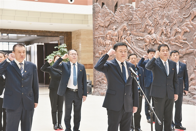在参观完主题展览后,由董鹏翔领誓,参加活动的党员领导干部面对党旗,重温了入党誓词。董鹏翔对一同参观的班子成员们说:“时代赋予了我们这代人新的历史使命,我们一定要将为人民服务的宗旨使命刻在心上、抓在手上、扛在肩上。”