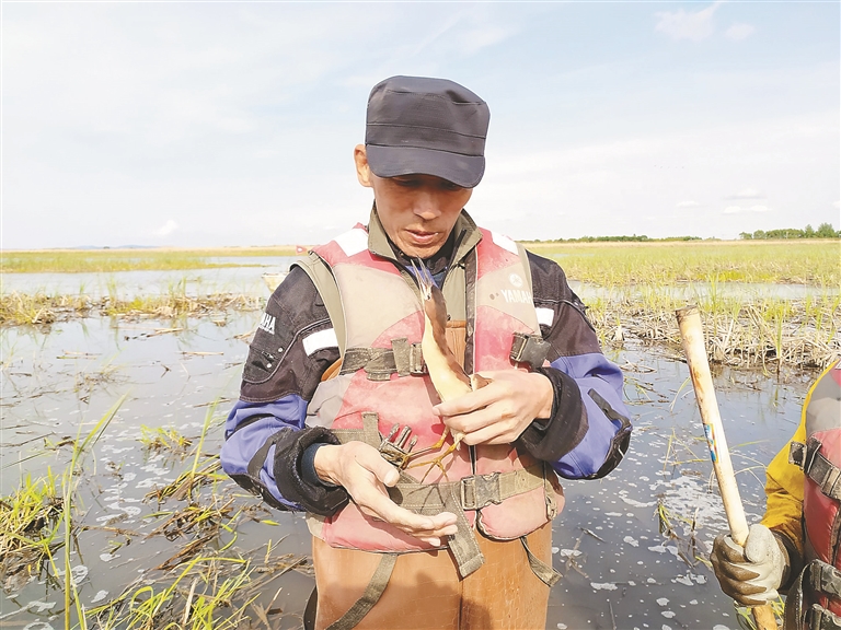 常年巡护经验丰富 志愿者发明捞网“飞钩”