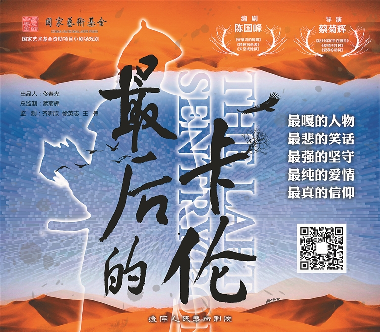 《最后的卡伦》故事发生在民国初年,一个新疆的罗布泊人不知道清朝已经灭亡,当一队盗窃新疆珍贵文物的西方考察队途径罗布泊时,他穿上清朝低级官服,严肃地查验洋人的关防证件,坚定地阻止他们掠夺盗窃行为,并最终壮烈牺牲……话剧在注重演出的喜剧效果同时,特别突出表现了主人公坚定的爱国主义情怀和勇气。三天时间,两部话剧气质不同,精彩纷呈,彰显辽宁人民艺术剧院丰富厚重的艺术底蕴。