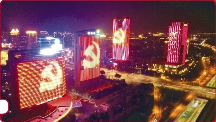 哈尔滨新区的庆祝中国共产党成立100周年主题灯光秀。 黑龙江日报全媒体记者 郭俊峰摄