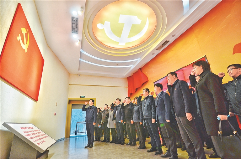松北区委党史学习教育专题读书班赴中共黑龙江历史纪念馆参观学习,并在党旗前重温入党誓词。 黑龙江日报全媒体记者 蒋国红摄