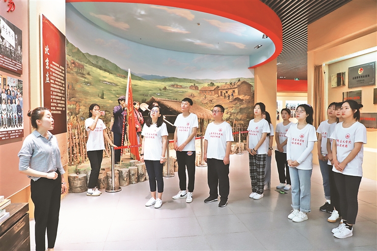 近日,哈尔滨师范大学马克思主义学院思想政治教育系组织该校学生社会实践团走进共青农场,围绕党史学习、理论宣讲、民情观察、生产体验、乡村振兴调研等内容开展实践活动,体验农耕甘苦,接受精神洗礼。 这是该校学生参观中国青年志愿垦荒纪念馆。黑龙江日报全媒体记者 王彦摄