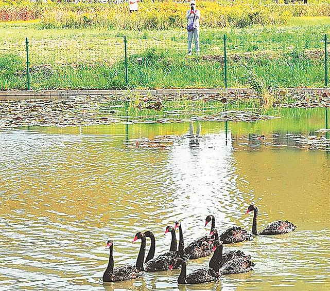 记者了解到,从今年的5月25日开始,大庆陆续在兰德湖、滨洲湖、万宝湖投放了黑天鹅,这些从南方引进、产自澳洲的黑天鹅一亮相,就引起了市民的广泛关注,好多摄影爱好者更是扛着“长枪短炮”赶来,就为一睹黑天鹅的风采。大庆湖里有黑天鹅的事儿不仅刷爆了朋友圈,在多个短视频平台也成了热门,各地网友纷纷称赞大庆环境好。天鹅“安家”地儿成了新的旅游网红打卡地。