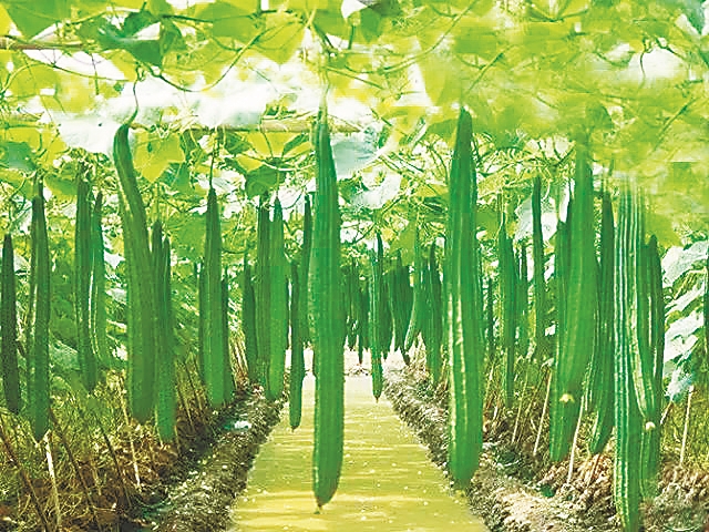 在母亲眼里,丝瓜花是生命花。每一朵花都是孕育新生命的希望。每天早上,凋零的花朵下会冒出一个个嫩绿的小丝瓜,如初生粉嫩的婴儿,让人油然顿生怜惜之意。不几天时间,院子的棚子上就缀满了长长短短、或弯或直的绿月亮。此时,金色的花,浓绿的叶,弯曲的蔓,加上这条条让人馋涎欲滴的果实,真让人惬意无穷。