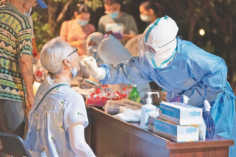 8月3日,市民在武汉市东湖风景区华侨城社区检测点进行核酸检测。 新华社记者 熊琦摄
