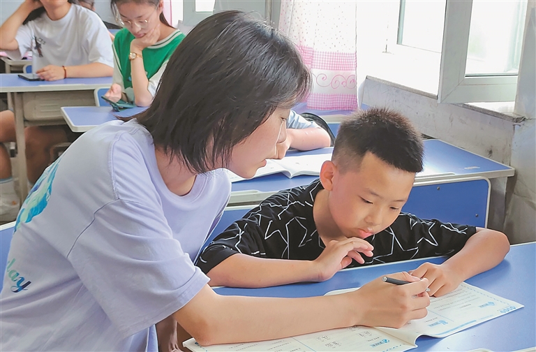 近日,杜尔伯特蒙古族自治县的留守儿童在暑期迎来他们的大学生课外辅导员,孩子们在大学生辅导员的带领下学习知识、做体育游戏,留守儿童的这个暑期不再孤单。单丹 黑龙江日报全媒体记者 郭俊峰摄