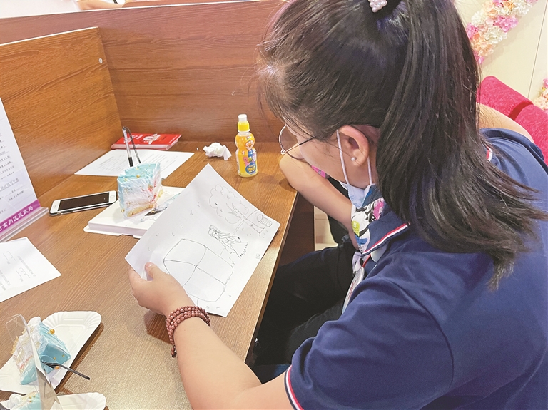 朱文雯与当事人的孩子进行沟通,通过图画分析孩子心理。