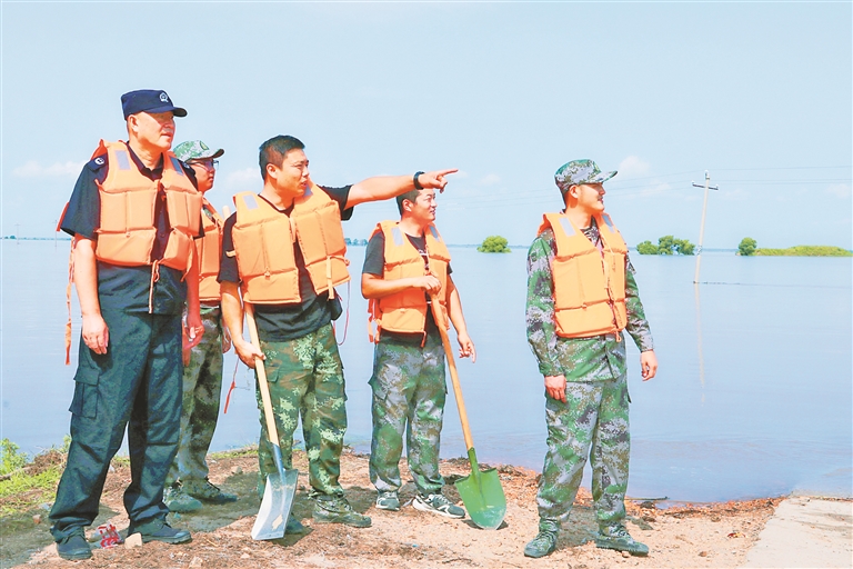 防汛队员全天候巡视重点位置水情。焦勇 纪世强摄