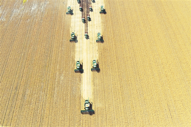 山河农场有限公司充分发挥现代化农业机械作业的优势,采取集中力量、突击会战的形式,快速推进收获、整地、烘干作业。王天一摄