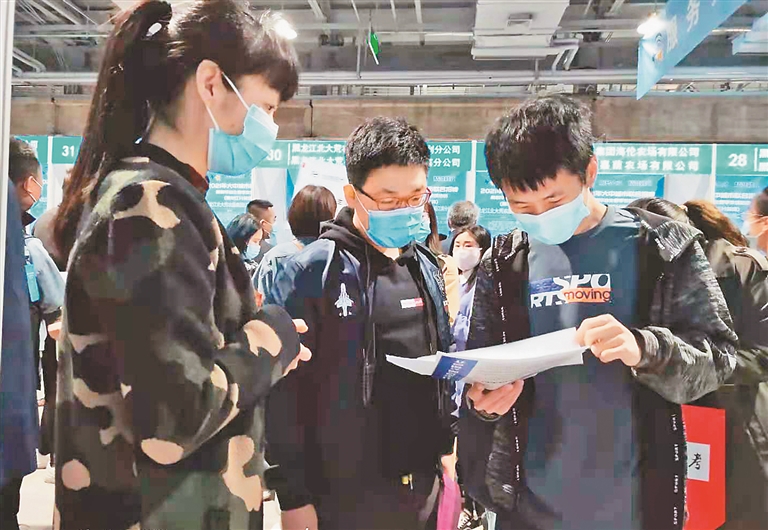 九三分公司在2021年大中城市高校毕业生春季专场活动黑龙江分会场招聘人才现场。李大勇摄