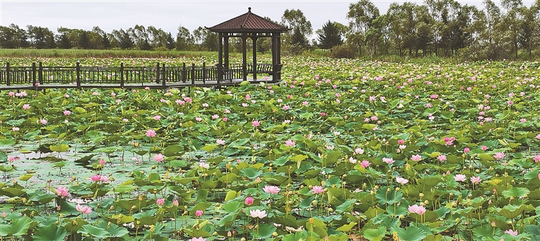 每年七、八月份,位于双鸭山市集贤县境内的安邦河国家湿地公园里,大大小小的荷花池就成为一片粉红色的天地,吸引了周边地区的游人前来赏荷。
