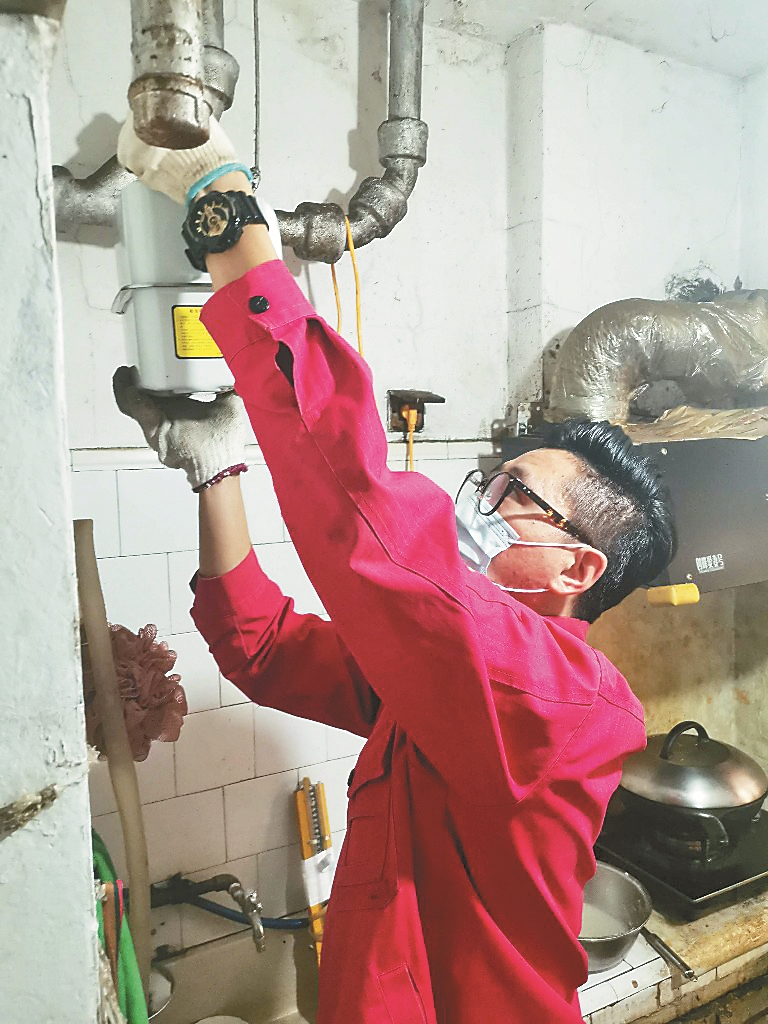 记者在安装现场看到,身穿红色工作服的安装人员张威熟练地卸下旧表,把新表安装上接通。一打开开关,“噗噗噗噗”的声音从燃气表中传出来。“这声音是把表中的空气排净,不然用户打不着火。”然后,他接上燃气安全测试表,通过15分钟的测试,没有泄露,很安全。长按表上的红色按钮3秒钟,通信开始。表上显示用户家燃气费余额15.12元。这表示安装运行成功,共用时半小时。徐丽丽高兴地说:“真方便,再也不用等抄表员每隔两个月上门告诉用气情况了。在手机上还能随时查看余额。”