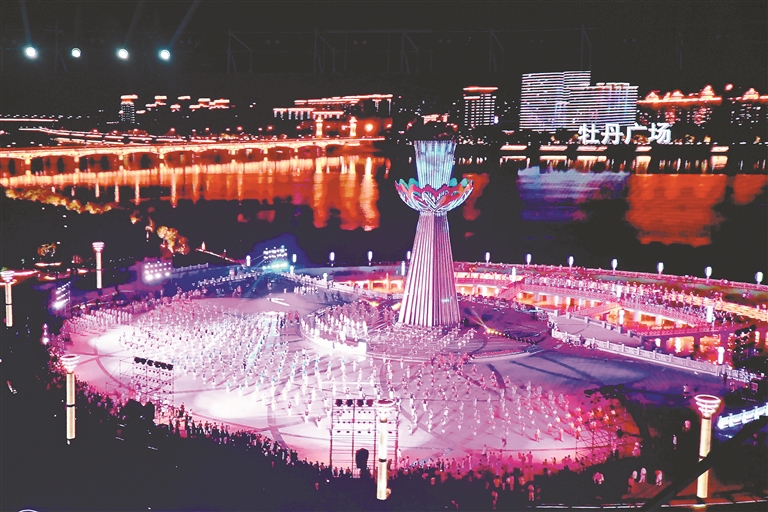 本报1日讯(黑龙江日报全媒体记者付宇)1日,夜幕降临,牡丹广场内喷泉升起,灯光闪烁,五朵艳丽的机械牡丹花在牡丹江上缓缓绽放,吸引着大批游人在观景平台上观赏“牡丹江上开牡丹”的盛景。