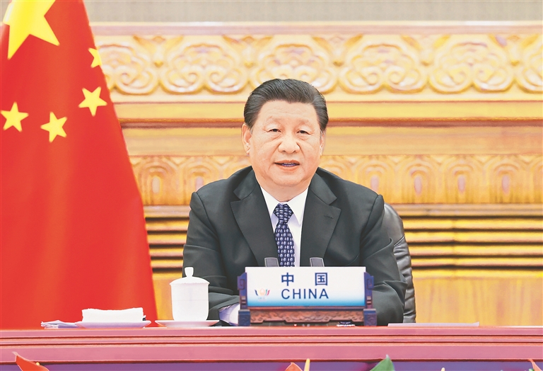 习近平指出,当前,新冠肺炎疫情仍在全球肆虐,世界经济复苏艰难曲折,国际秩序演变深刻复杂。面对挑战,金砖国家要展现担当,为世界和平与发展作出积极贡献,推动构建人类命运共同体。