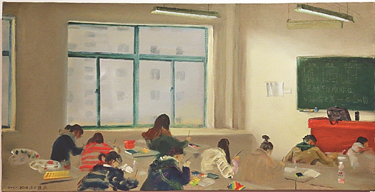 欧阳超英《静谧之美·校园的窗》 布面油画 40×80cm