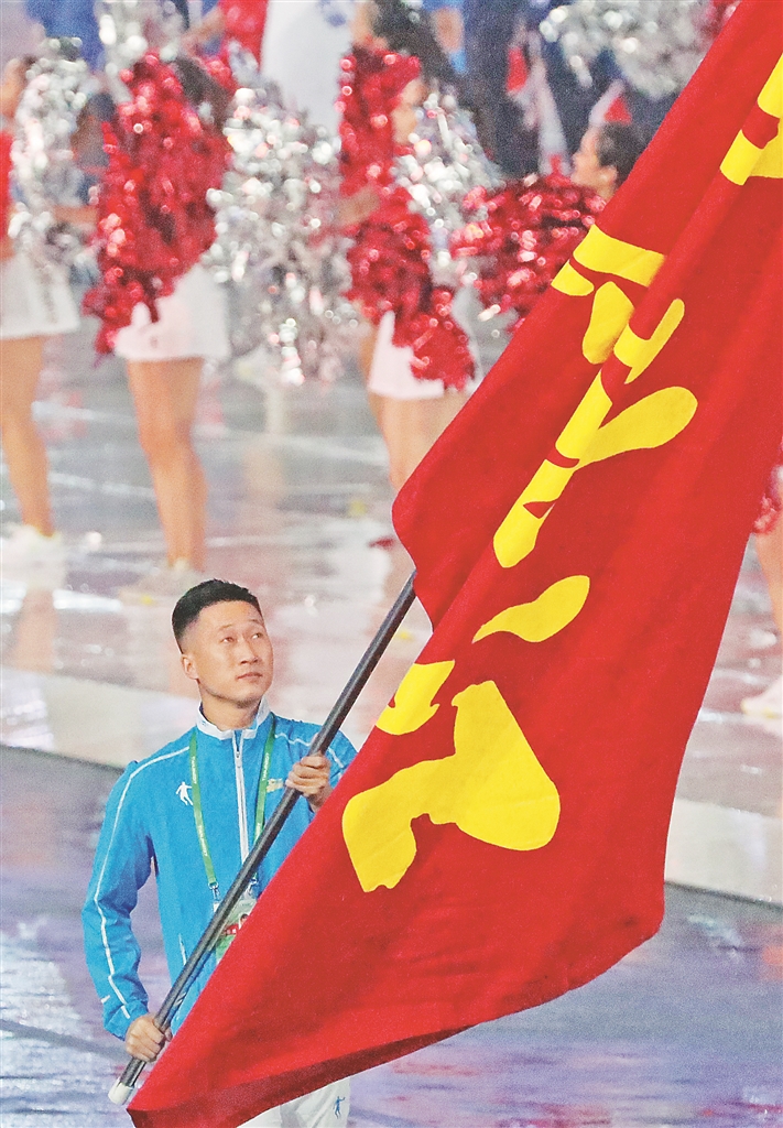 在2017年全运会上,王镇担任黑龙江代表团旗手。 黑龙江日报全媒体记者 张澍摄