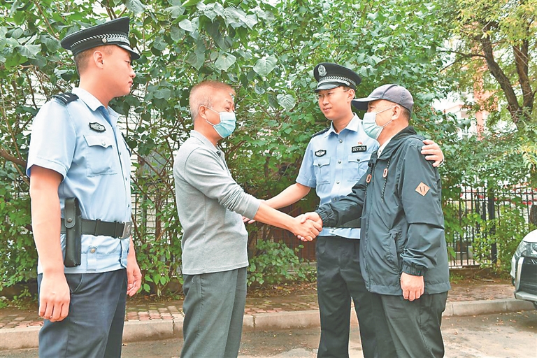 经民警调解后,邻里握手言和。郝帅 黑龙江日报全媒体记者 李爱民摄