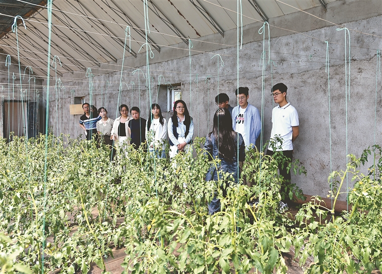 哈工大穆棱市政务实习生到穆棱9°西红柿种植基地参观学习。