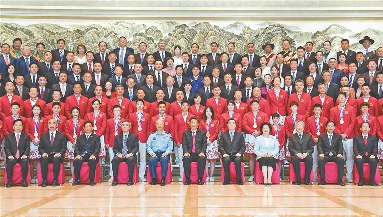 15日下午,习近平在陕西大会堂亲切会见了全国群众体育先进单位、先进个人代表和全国体育系统先进集体、先进工作者代表,东京奥运会中国体育代表团运动员和教练员代表等,并同大家合影留念。习近平同大家亲切交流,勉励他们奋力拼搏、再创佳绩。