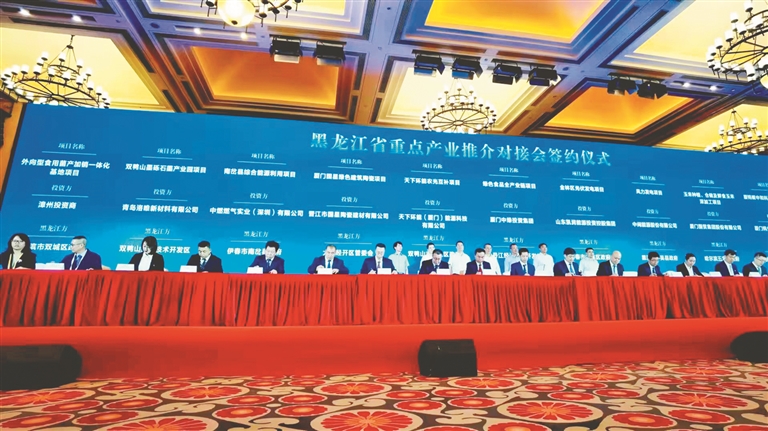 在第二十一届中国国际投资贸易洽谈会黑龙江省重点产业推介对接会上,中闽能源股份有限公司与黑河市孙吴县政府签订了风力发电项目,山东凯润能源投资控股集团与伊春市金林区人民政府签订金林区光伏发电项目……30个重点合作项目的签约背后,是黑龙江省全员招商、全面招商、全力招商的热力涌动。