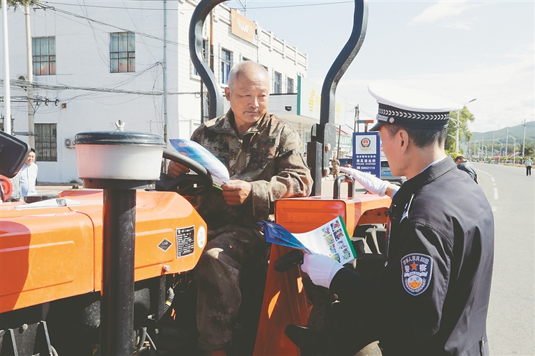 牡丹江市交警支队宣传科科长程广涛说:“牡丹江市区共有有牌照拖拉机和收割机6000辆左右,牡丹江交警支队将强化道路交通安全宣传教育的力度,并且进一步加强路面管控力度。”