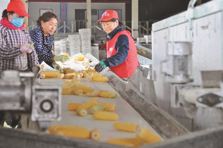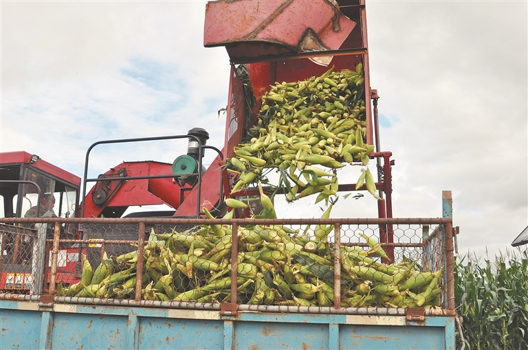 迎着秋日的阳光,走进位于肇东市宣化乡的黑龙江福忠农业科技有限公司,只见鲜食玉米加工车间内正上演着一出繁忙的生产大剧。一穗穗刚刚采摘的鲜食玉米通过机械传送带进入加工流水线,工人们对鲜食玉米进行人工分拣,色泽金黄、颗粒饱满的玉米经过清洗、标准筛选、125度高温蒸煮、零下35度8小时速冻保鲜等多道处理工序,最终被加工成黏甜可口的无菌真空包装鲜食玉米。“我们的黏玉米口感很糯,穗穗领‘鲜’,吃起来特别香甜,品尝过的人都纷纷竖大拇指,深受消费者喜欢。”黑龙江福忠农业科技有限公司总经理刘丽丽充满自信。