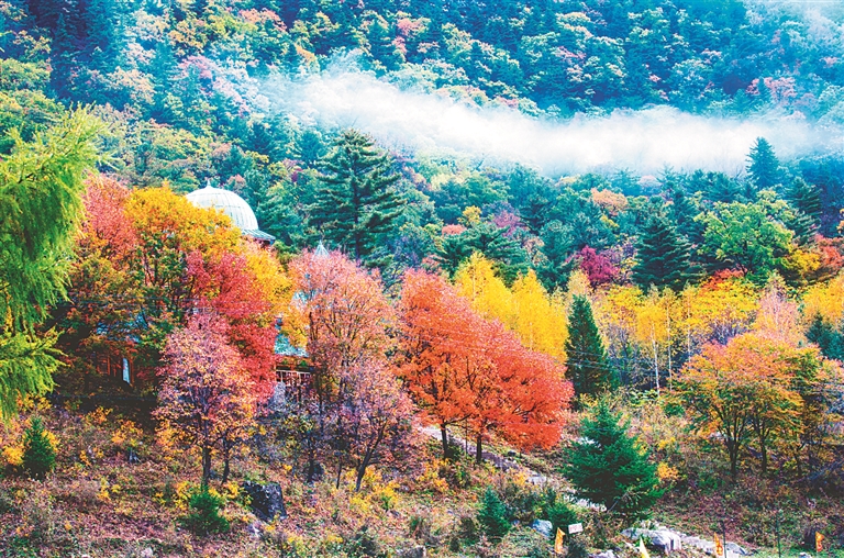 伊春地处北纬46°至49°之间,这里分布着广袤的亚寒带针阔混交林,秋季昼夜温差大,雨量充沛,具备了形成五花山的条件。