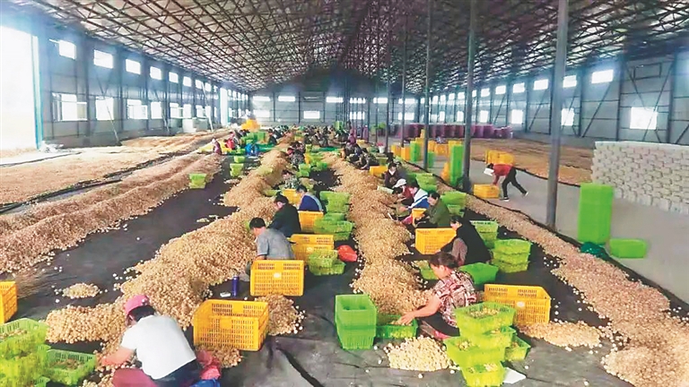 村民们正在挑选黄菇娘。