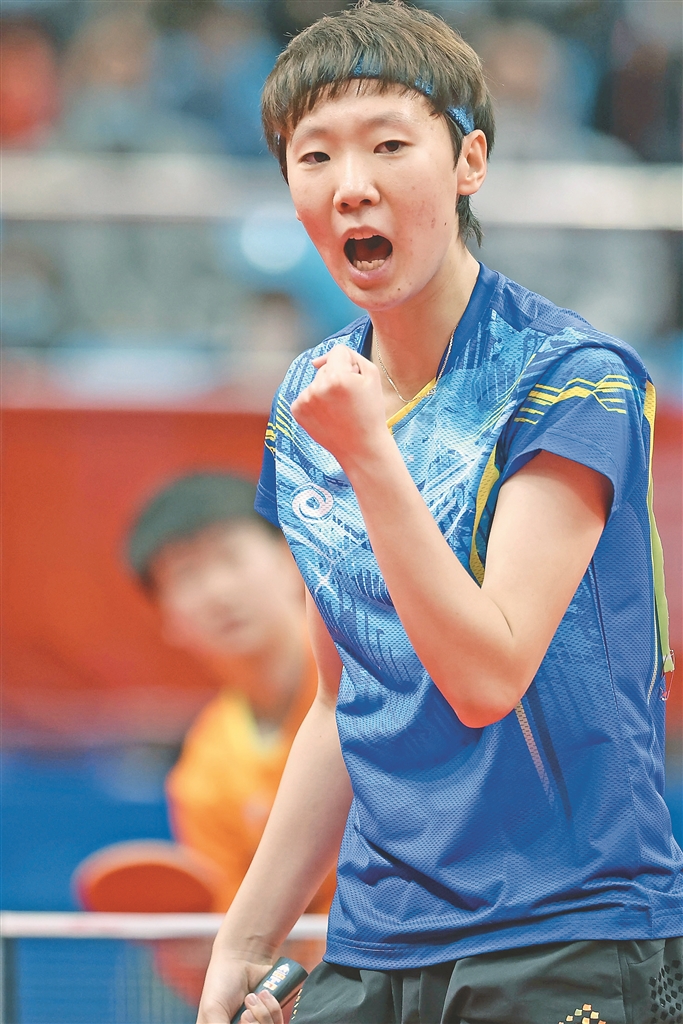 9月25日,黑龙江选手王曼昱在比赛中庆祝。新华社记者 张涛摄