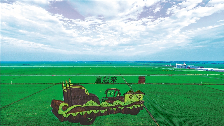 富锦稻田画。